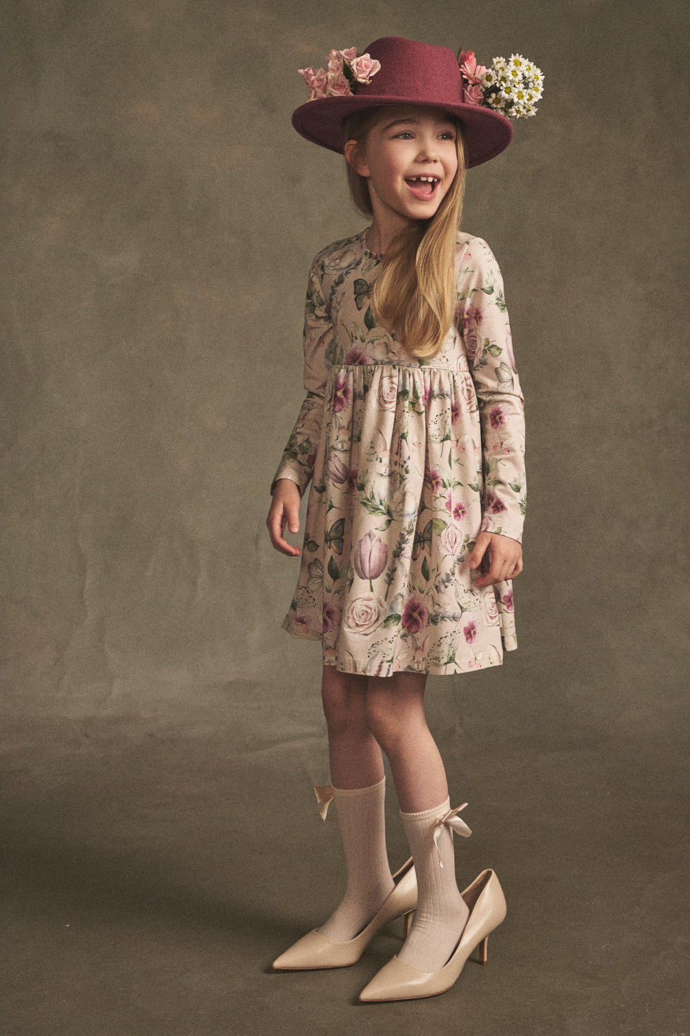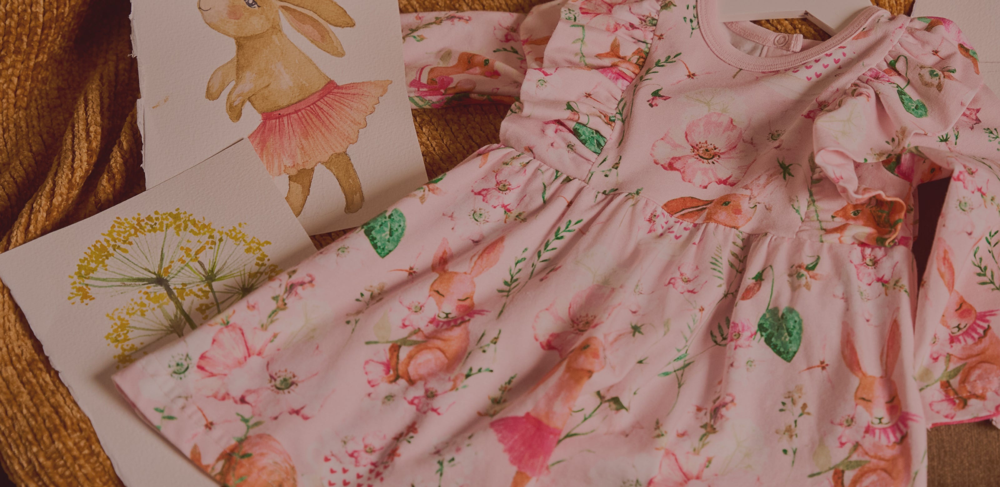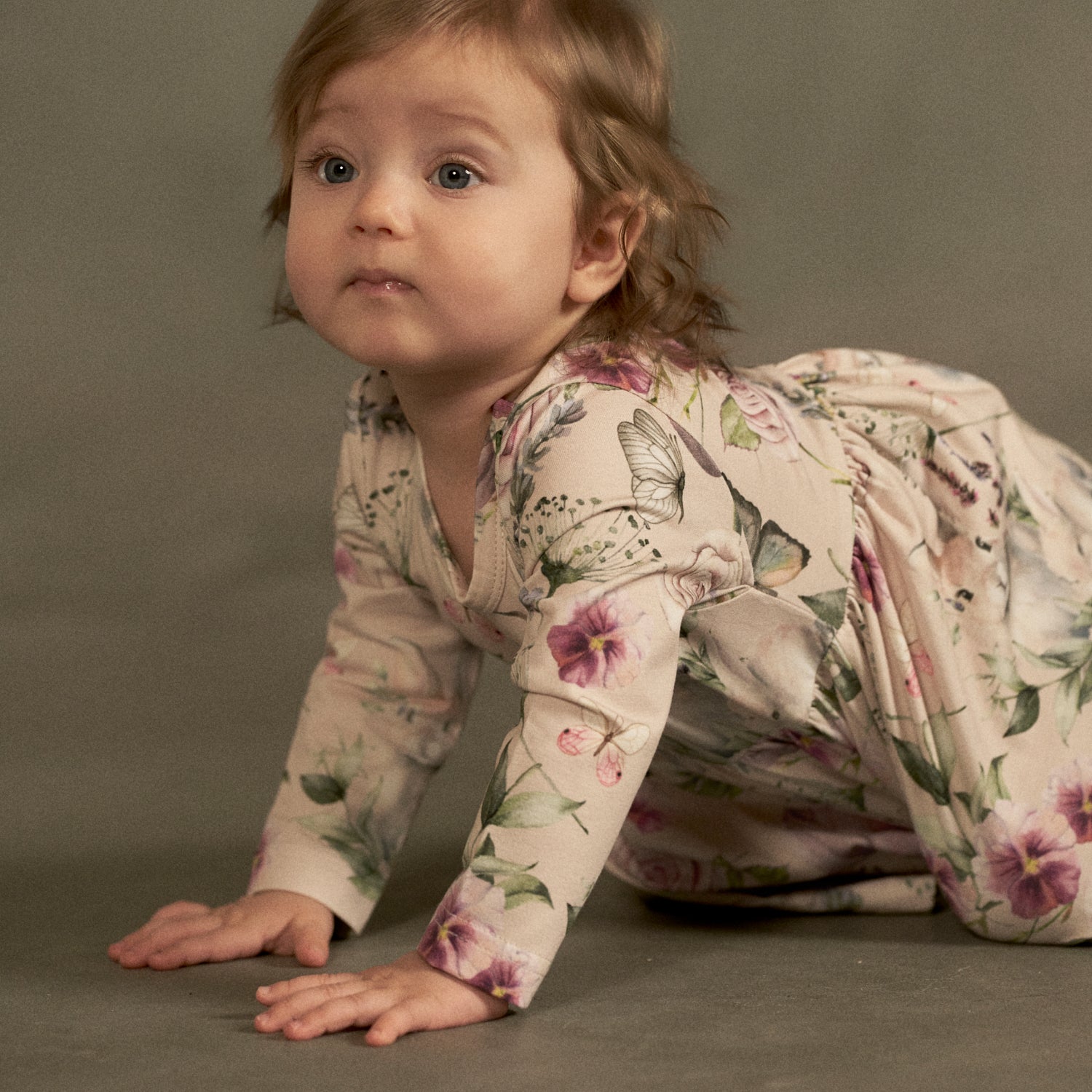 Orvokki-kuosissa kevään herkkä mutta voimakas kukkaloisto yhdistyy perhosten ja pienten pupuhahmojen leikkiin. Murretut, puuteriset sävyt ovat ylellisiä ja rauhoittavia – ja kuitenkin kokonaisuudessa on ripaus salaisen puutarhan mielikuvituksellista taikaa.