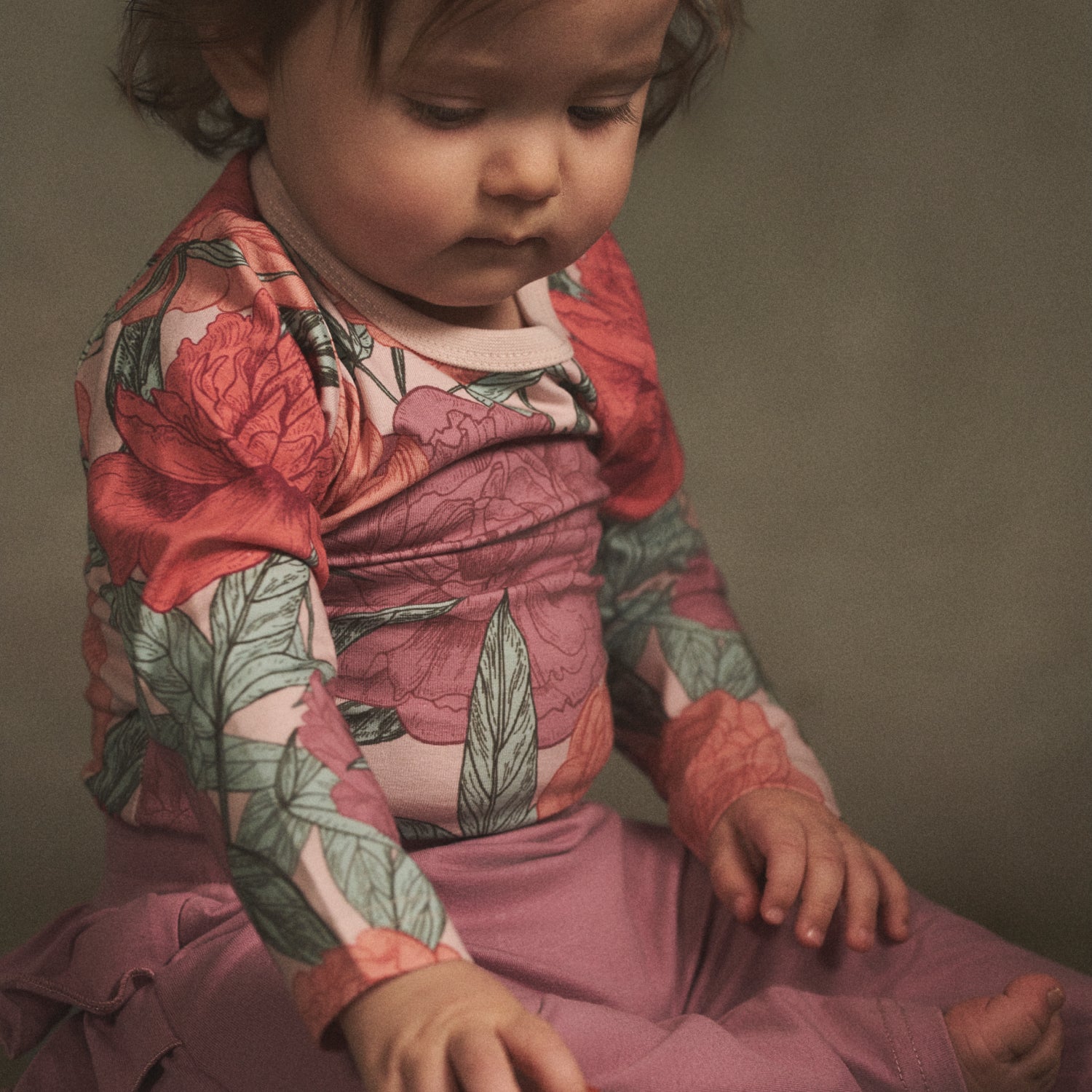 Mirabelis-kuosin runsaat ja rehevät pionit ottavat rohkeasti tilan ja kasvavat täyteen mittaansa. Murrettu värimaailma tekee kuosista rauhallisen kaikessa näyttävyydessään. Yksityiskohtainen viivajälki muistuttaa satujen maailmasta.