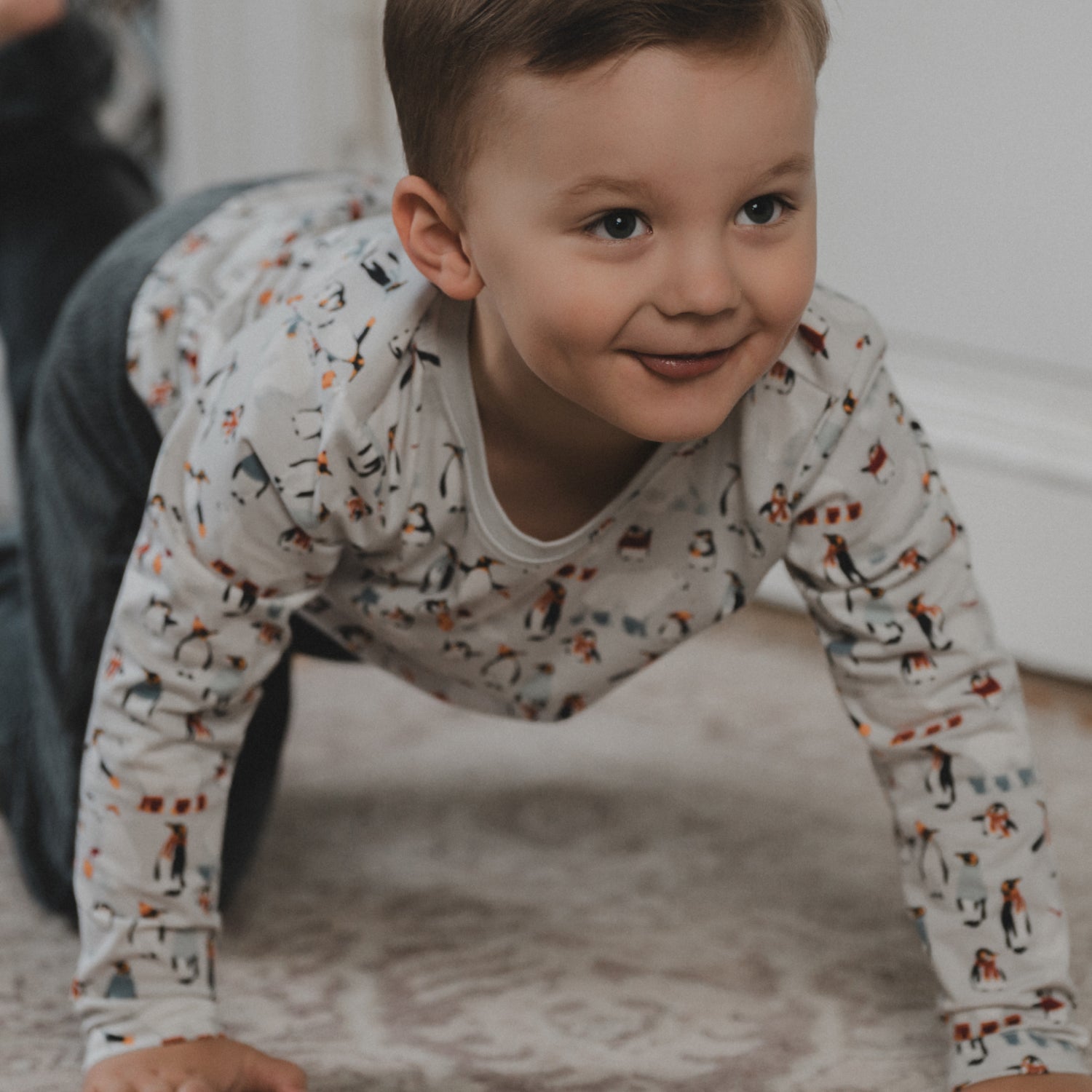 Katsokaa! Talviystävät ovat lähteneet ulkoilemaan, talvipäivästä nauttimaan! Jääkarhu on sujauttanut jalkaansa villasukat ja tepastelee iloisena pingviinien joukossa. Pieni pingviini on päässyt jopa sen selkään pienelle kävelylle, hurjan hauskaa!