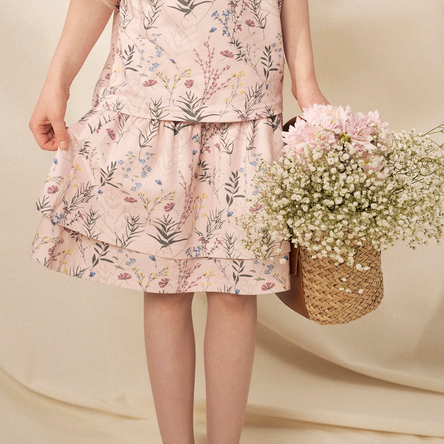 Ihanan Timjami-kuosin herkkä viiva rauhoittaa romanttisen puuterinsävyisen kokonaisuuden, jonka runsas kuvitus muistuttaa lapsuuden kasvioista. Vai sataako taivaalta kukkasia? Sen saa seikkailija itse päättää.