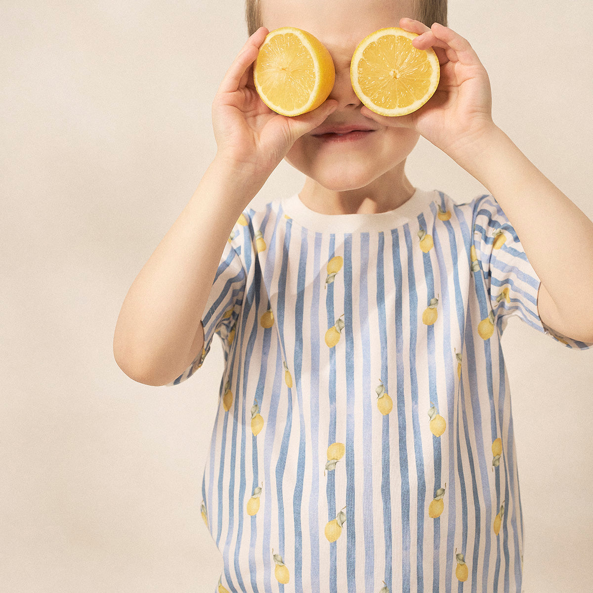 Hurmaava Sitruunaraita-kuosin akvarellijälki tyylikkäine värimaailmoineen kuljettaa muistojen lämpimiin iltapäiviin rannalla. Pirteät pikkusitruunat vilistävät leikkisästi klassisella sinivalkoraidallisella pohjalla. Tuoksuuko täällä merivesi – vai eväskoriin pakattu kirpeä sitruunapiiras?