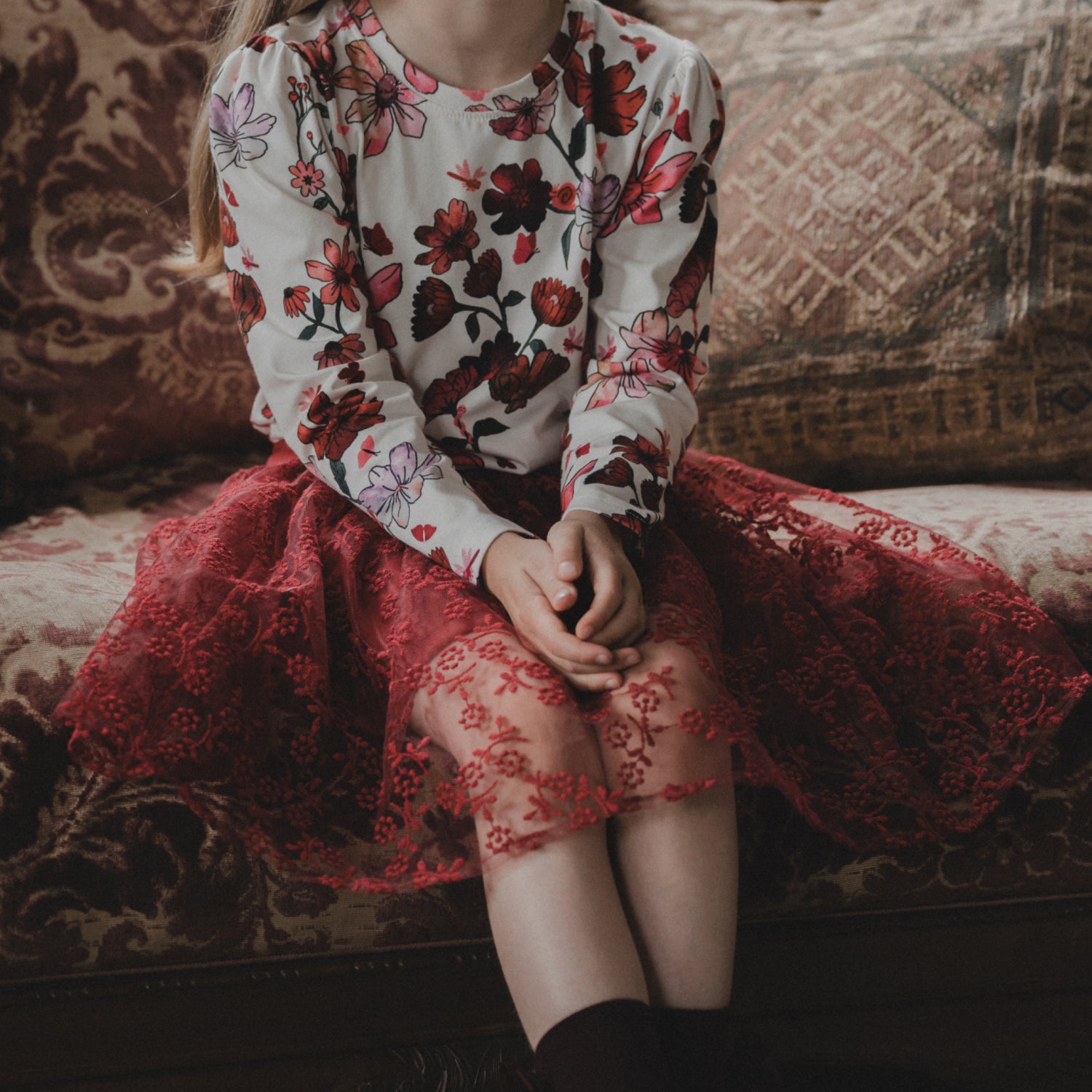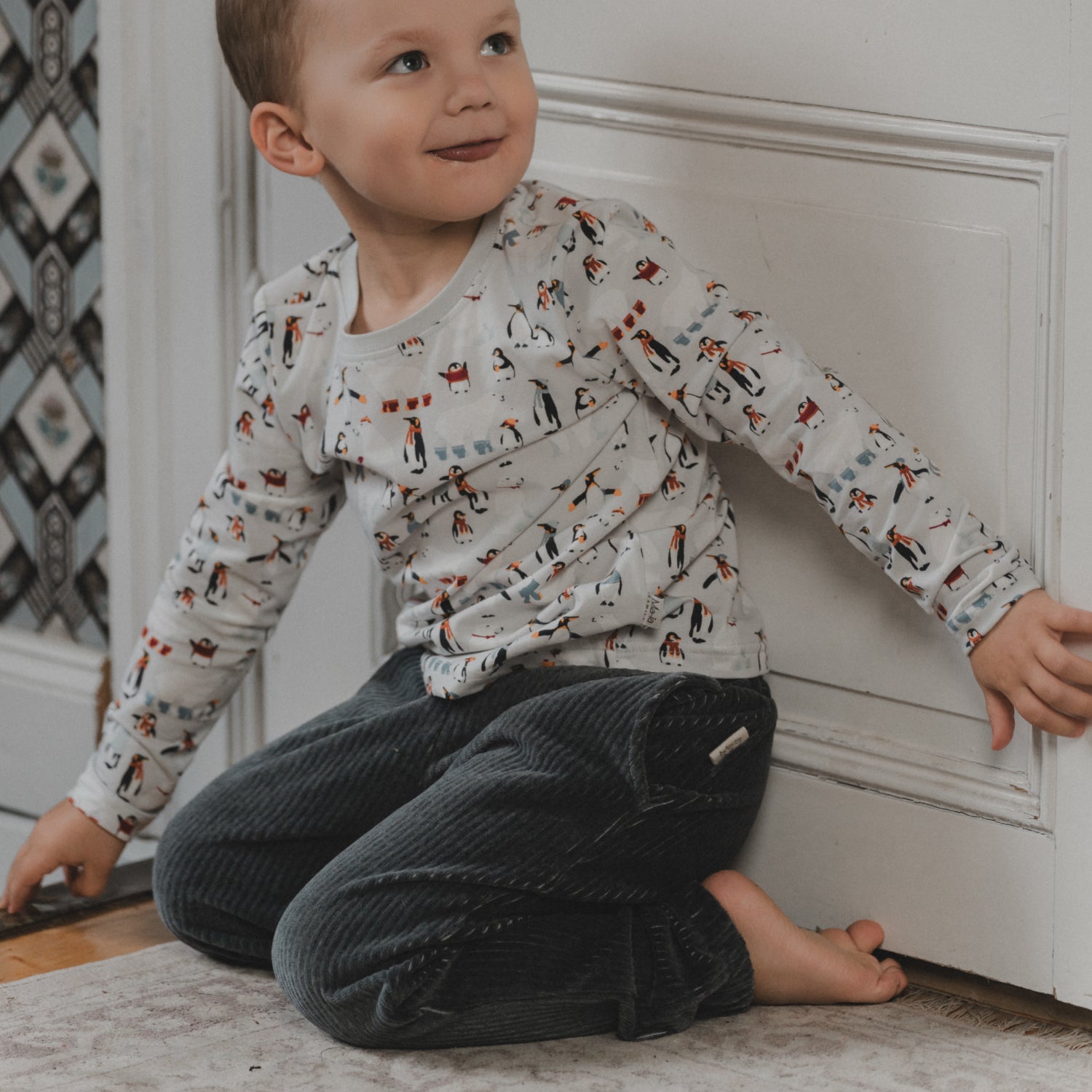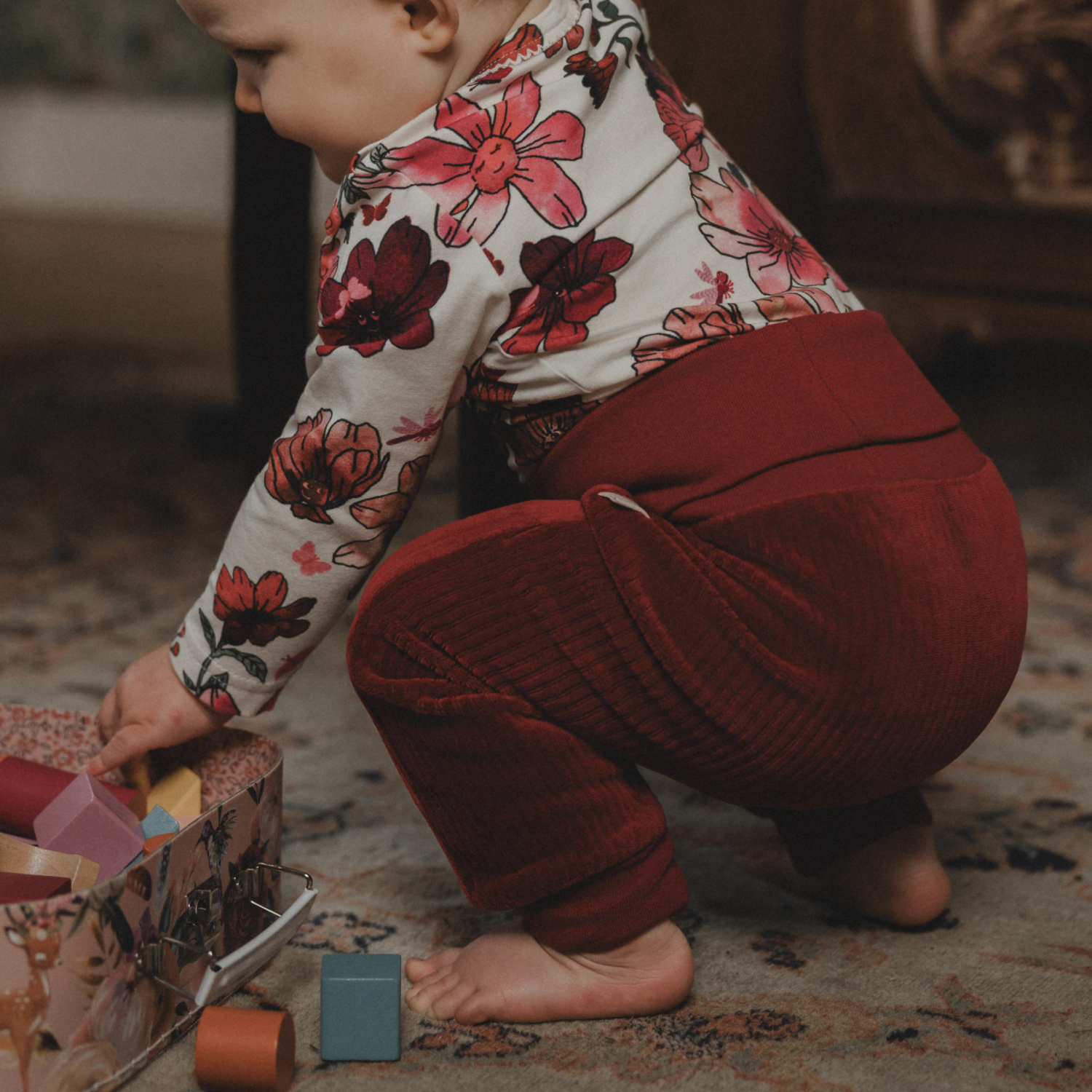 Kerrassaan hurmaavat housut on valmistettu pehmeästä ja mukavasti joustavasta farkkukankaasta. Siinä on istuva yläosa, nappikiinnitys ja vetoketju, taskut, takaa joustava vyötärö sekä hieman suorat, pitkät, aavistuksen levenevät lahkeet. Ja kas: kokonaisuuden kruunaa toisen taskun alle brodeeratut sydän ja kukka.